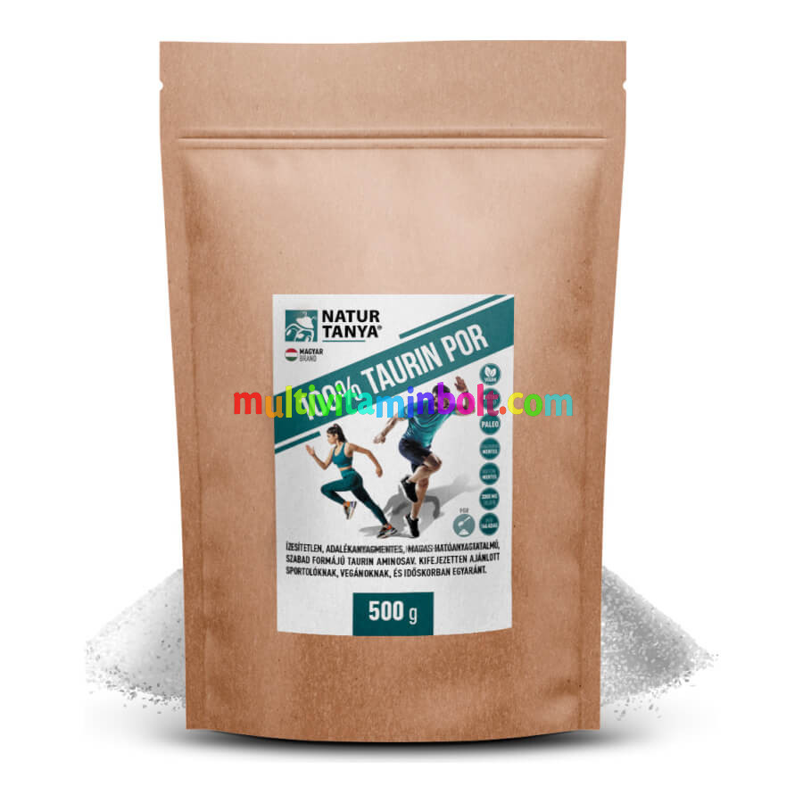Ízesítetlen, adalékanyagmentes, magas hatóanyagtartalmú, szabad formájú taurin aminosav, ami elfogyasztása után kevesebb mint egy óra alatt a véráramba kerül, hogy energiát adjon. Különösen ajánljuk vegánoknak, sportolóknak, fogyókúrázóknak, cukorbetegeknek továbbá az idősebb korosztályba tartozóknak, mivel az életkor előrehaladtával a taurin szintje az agyban és a szívben jelentősen csökken. Termékünk nem tartalmaz csomósodást gátló anyagokat, igény szerint 3 éves kortól és hosszú távon is biztonságosan alkalmazható.