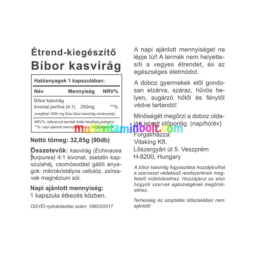 A https://multivitaminbolt.com webáruház és magazin oldalainak tartalma kizárólag információ átadás célját szolgálja. Az információ semmilyen körülmények közt nem helyettesítheti a szakorvosi tanácsadást vagy kezelést. A https://multivitaminbolt.com minden felhasználójának nyomatékosan felhívjuk a figyelmét arra, hogy tüneteivel a kezelő orvosához forduljon, és ne kezdje saját magát kezelni, ill. módosítani az orvos által előírt kezelésen, sem pedig a kezelést magától abbahagyni. A https://multivitaminbolt.com tartalma nem használható öndiagnózisra, sem pedig gyógykezelés kiválasztására, alkalmazására vagy befejezésére. A https://multivitaminbolt.com csapata a lapon közölt információkat legjobb tudásuk szerint készítették el. Kisebb szerkesztési hibák előfordulása nem zárható ki. Az oldalon megtalálható leírások, szövegek, képek könyvekből, neves internetes portálokról, többnyire szakértők, természetgyógyászok, orvosok, gyártók, fogyasztók visszajelzései alapján lettek összeállítva. Sok esetben a gyártó által, a gyártó weboldalán fent lévő tartalom kerül ki másolva weboldalunkra. Nem nyújthatók be tehát olyan kárigények, melyek az információ (beleértve a hiányos vagy hibás információkat is) felhasználásával okozott kár megtérítését célozzák. Az ajánlások nem kötelező érvényűek és kötelezettség nélküliek. A szerzők fenntartják a jogukat, hogy bármikor, előzetes értesítés nélkül a honlap egyes részeit vagy teljes egészét megváltoztathatják.