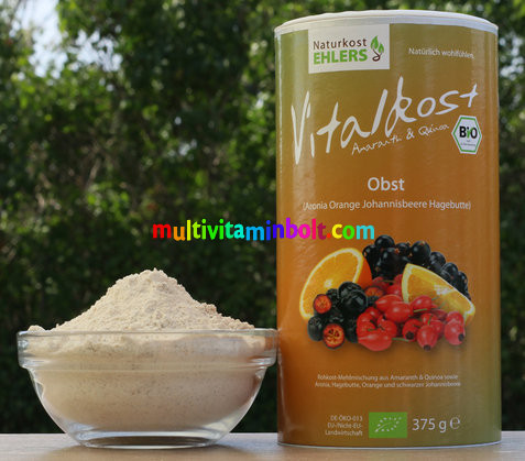 Összetevők: Amaránt, quinoa, berkenye (10%), narancs (10%), ribizli (10%).