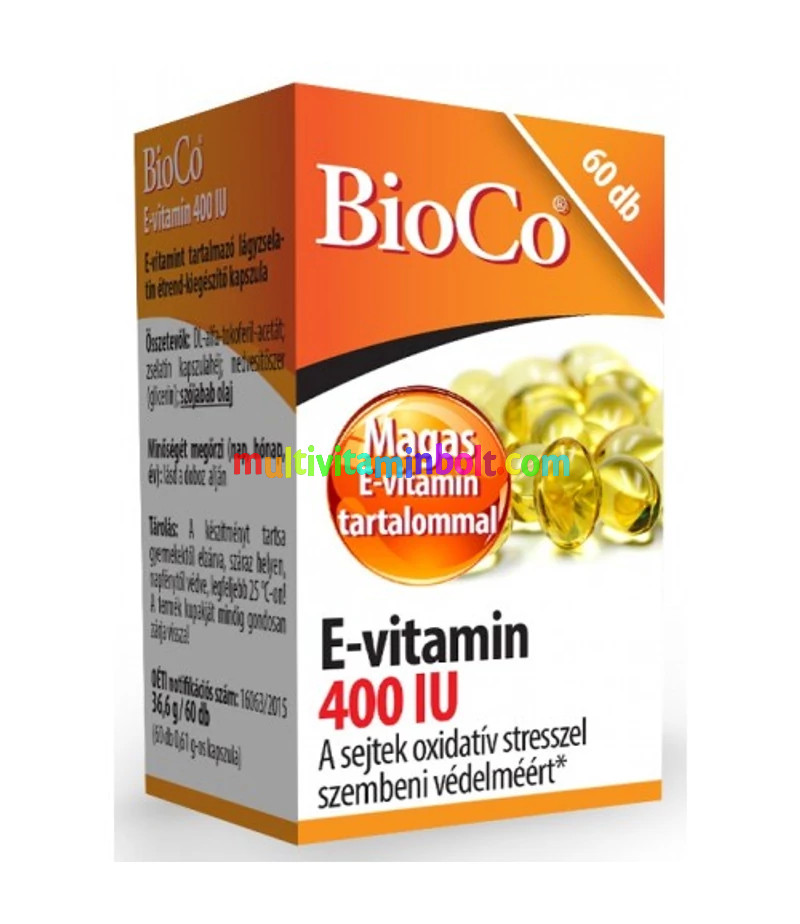 Összetevők: DL-alfa-tokoferil-acetát; zselatin kapszulahéj; nedvesítőszer (glicerin); szójabab olaj