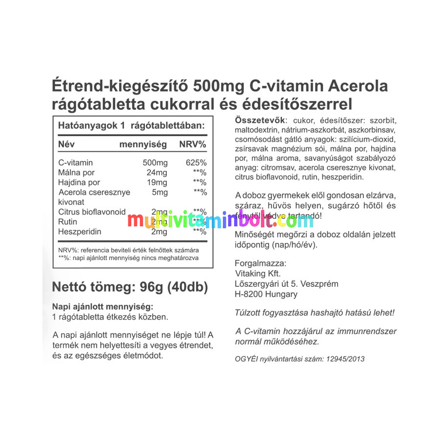 A https://multivitaminbolt.com webáruház és magazin oldalainak tartalma kizárólag információ átadás célját szolgálja. Az információ semmilyen körülmények közt nem helyettesítheti a szakorvosi tanácsadást vagy kezelést. A https://multivitaminbolt.com minden felhasználójának nyomatékosan felhívjuk a figyelmét arra, hogy tüneteivel a kezelő orvosához forduljon, és ne kezdje saját magát kezelni, ill. módosítani az orvos által előírt kezelésen, sem pedig a kezelést magától abbahagyni. A https://multivitaminbolt.com tartalma nem használható öndiagnózisra, sem pedig gyógykezelés kiválasztására, alkalmazására vagy befejezésére. A https://multivitaminbolt.com csapata a lapon közölt információkat legjobb tudásuk szerint készítették el. Kisebb szerkesztési hibák előfordulása nem zárható ki. Az oldalon megtalálható leírások, szövegek, képek könyvekből, neves internetes portálokról, többnyire szakértők, természetgyógyászok, orvosok, gyártók, fogyasztók visszajelzései alapján lettek összeállítva. Sok esetben a gyártó által, a gyártó weboldalán fent lévő tartalom kerül ki másolva weboldalunkra. Nem nyújthatók be tehát olyan kárigények, melyek az információ (beleértve a hiányos vagy hibás információkat is) felhasználásával okozott kár megtérítését célozzák. Az ajánlások nem kötelező érvényűek és kötelezettség nélküliek. A szerzők fenntartják a jogukat, hogy bármikor, előzetes értesítés nélkül a honlap egyes részeit vagy teljes egészét megváltoztathatják.
