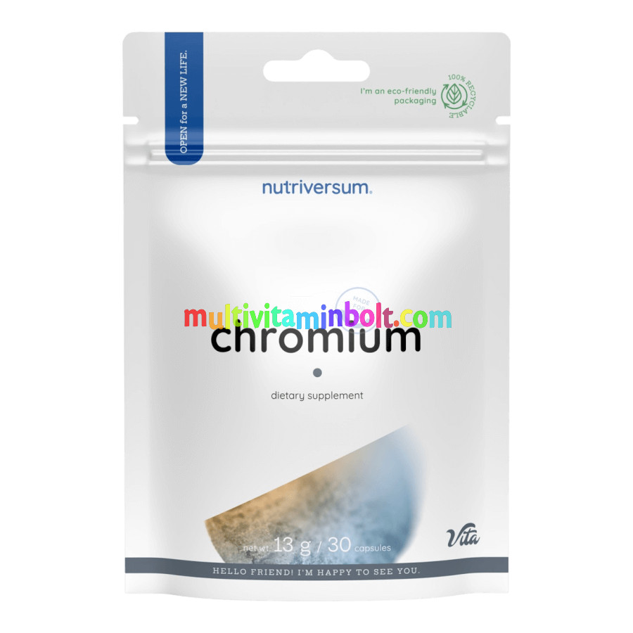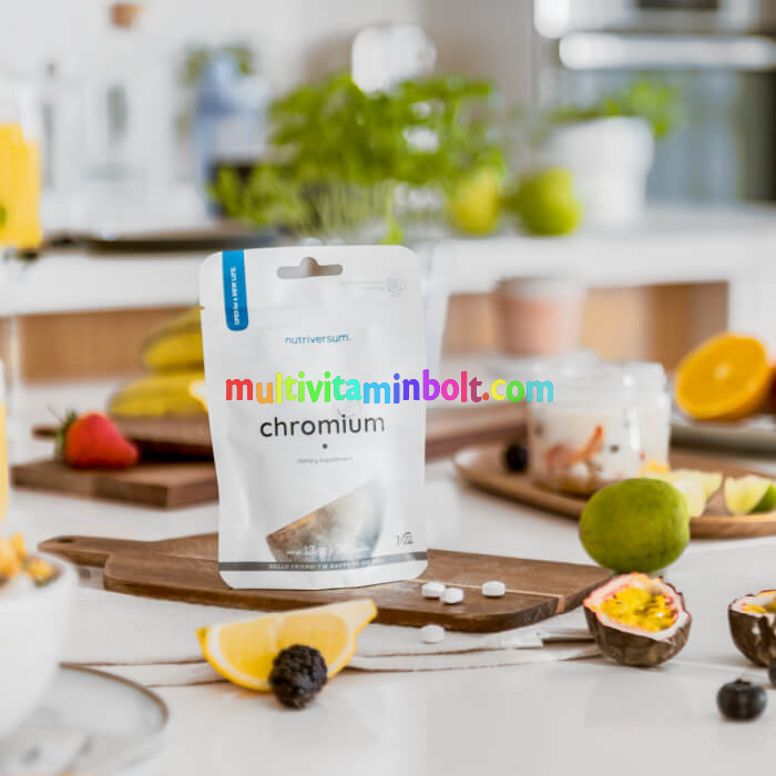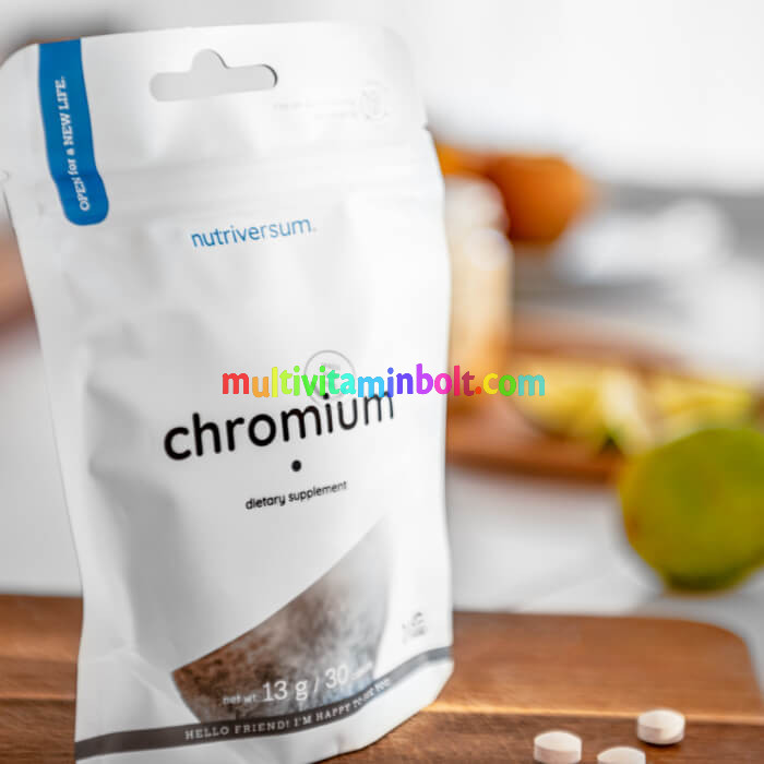 A Chromium tablettánként 200 μg krómot tartalmaz, amely a vércukorszint normál szinten tartásával támogathatja a különböző diéták sikerességét.