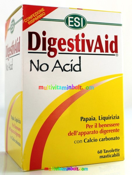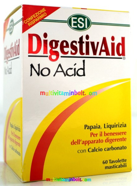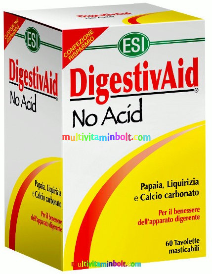 DigestivAid No Acid 60 db tabletta, szopogatós. Savlekötő, lúgosító, édesgyökér, papaya, alma pektin - ESI