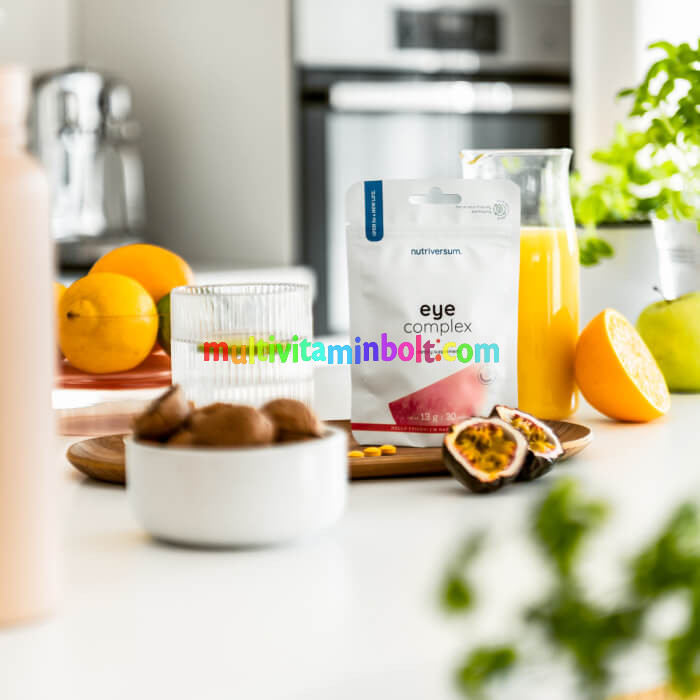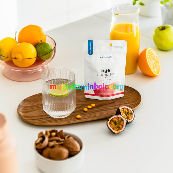 A-vitamin-, b2-vitamin-, c-vitamin-, e-vitamin-, lutein-, cink-, szelén- és béta-karotin-tartalmú étrend-kiegészítő tabletta.