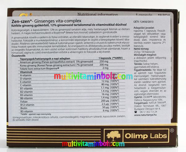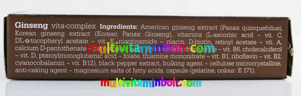 Az Olimp Ginseng Vita Complex a két legjobb forrásból – koreai és amerikai panax ginseng - származó ginseng gyökér koncentrált kivonatát tartalmazza! A kétféle ginseng nagyon hasonló, de mégis enyhén eltérő hatóanyagai egyben kiegészítik és felerősítik egymás hatásait! Az Olimp által is használt ginseng kombináció kb. 15 vegyülete a fekete bors szabadalmaztatott kivonatával és 12 vitaminnal megerősítve az emberi szervezetre hihetetlenül komplex módon van pozitív hatással: meglepő, de pont azon hormonok és enzimek termelődését stimulálja, amik „le vannak maradva”, így pozitív egyensúlyt teremtve a szervezetünkben. Pontosan emiatt nem egy egészségtelen hatású „pörgető”, hanem egyszerűen a természetes energiáinkat segít felszabadítani, így elmúlik az eddig normálisnak hitt testi és szellemi fáradékonyság. Támogatja az agyalapi mirigy, a pajzsmirigy és a mellékvese kéreg működését is, amelyek több olyan hormonért és folyamatért felelősek, amik egyben az anyagcserénket is befolyásolják, így ezzel is segítenek„optimalizálni” a szervezetünk energiatermelését – ezzel pedig a teljesítőképességét!