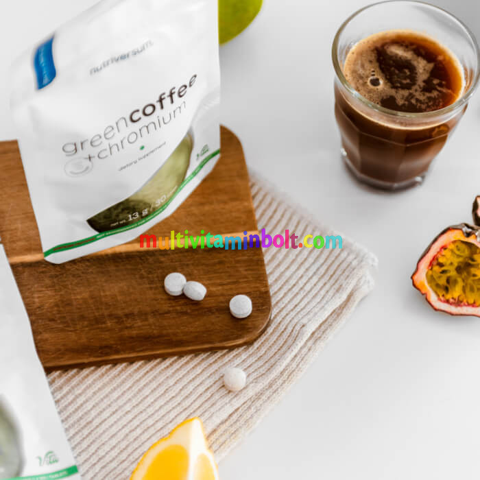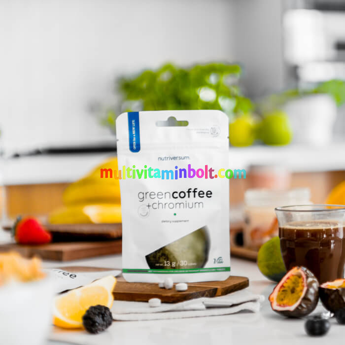 A Nutriversum VITA - Green Coffee + Chromium adagonként 200 mg zöldkávébab-kivonatot, illetve 50 μg krómiumot tartalmaz.