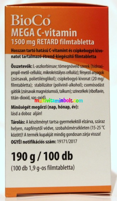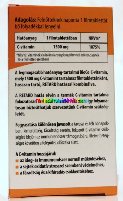 A legmagasabb hatóanyag-tartalmú BioCo C-vitamin, mely 1500 mg C-vitamint tartalmaz filmtablettánként, hosszan tartó, RETARD hatással kombinálva.