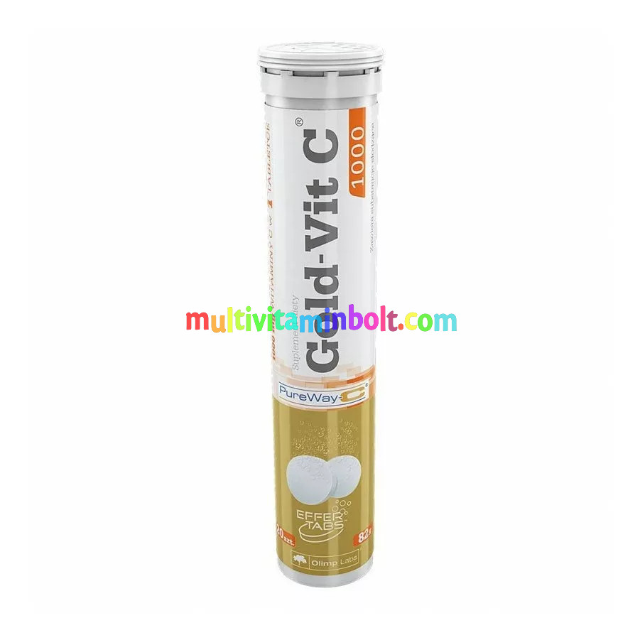 Az Olimp Gold-Vit C® 1000 pezsgőtabletta szabadalmaztatott új generációs C-vitamint tartalmaz, mely szerves formájának köszönhetően a hagyományos aszkorbinsavas készítményeknél lényegesen nagyobb mértékben képes felszívódni, kíméli a gyomrot, illetve citrus bioflavin tartalmának köszönhetően érvédő hatással bír! Kimondottan ajánlott a dohányzóknak, a megbetegedéses időszakokban, illetve nagyobb fizikai terhelésnek kitett sportolóknak!