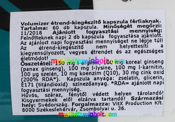 A Volumizer spermiumszám növelése érdekében összeállított, különleges gyógynövényeket és aminosavakat tartalmazó kapszulákat kifejezetten férfiaknak állították elő a Viamax észtországi gyárában. A spermanövelő kapszulákat orálisan kell bevenni a termék leírásban olvasottak alapján. A leghatékonyabb eredmények elérése érdekében kapjon be naponta 2 kapszulát, mindig azonos időpontokban legalább 2-3dl folyadékkal. A két tablettát beveheti akár egyszerre is, de még jobb lehet, ha két különböző időpontban, a nap 2 különböző szakaszában veszi be. A maximális eredmények elérése érdekében fogyassza több hónapon keresztül. A legoptimálisabb, ha hat hónapig alkalmazza a sperma növelő és tesztoszteron szintet fokozó készítményt.