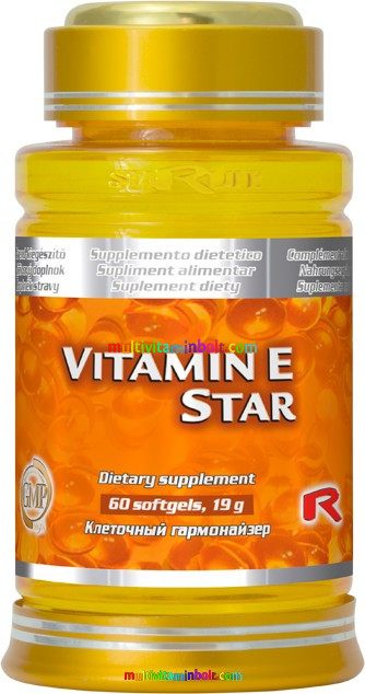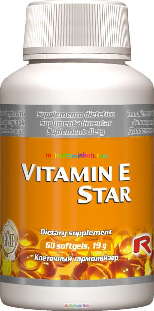Vitamin E Star - E-Vitamin, 60 db lágyzselatin kapszula 100 mg - StarLife étrend-kiegészítő